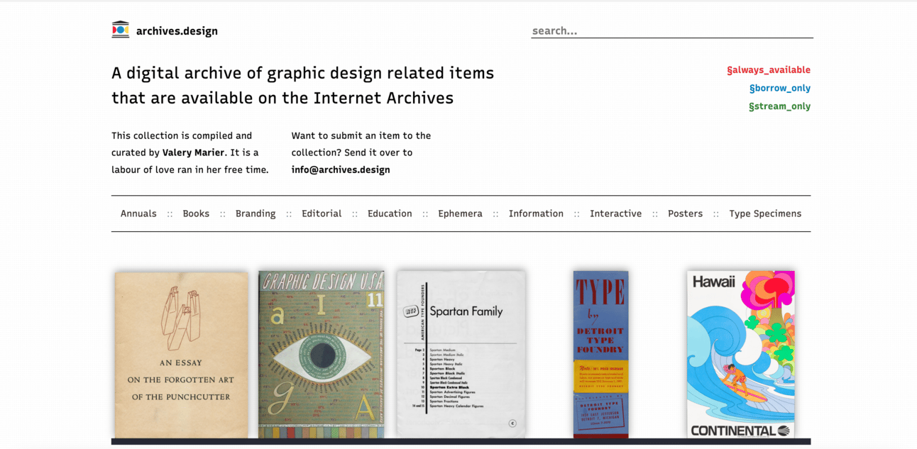 A digital archive of graphic design related items that are available on the Internet Archives.