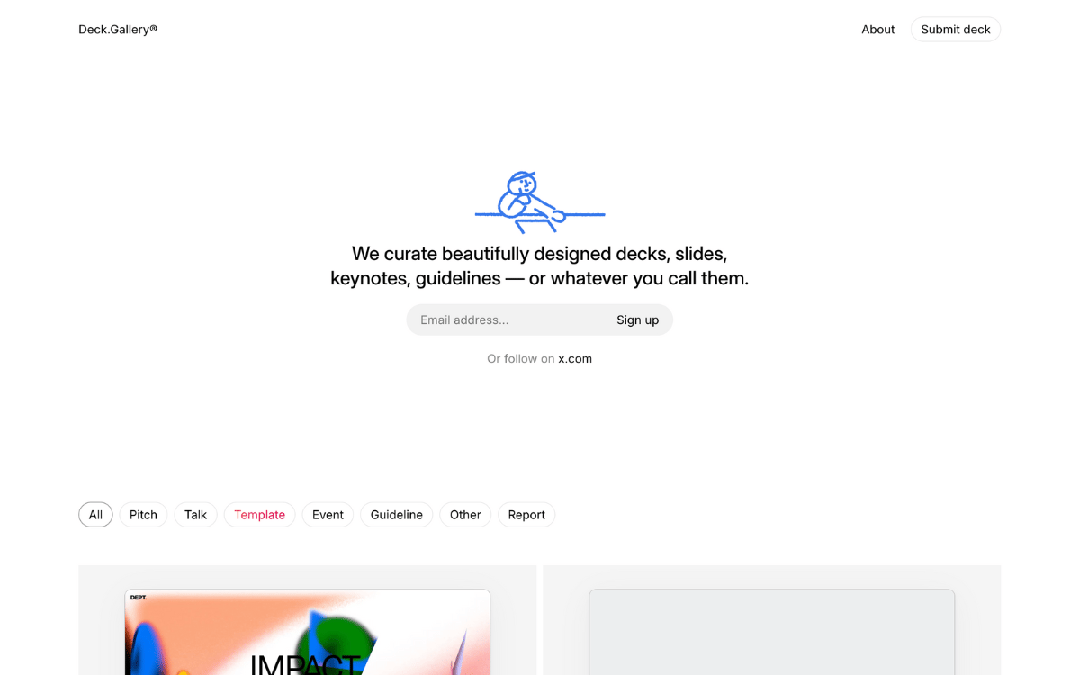 A curated collection of the most beautifully designed decks and presentations to take inspiration from.