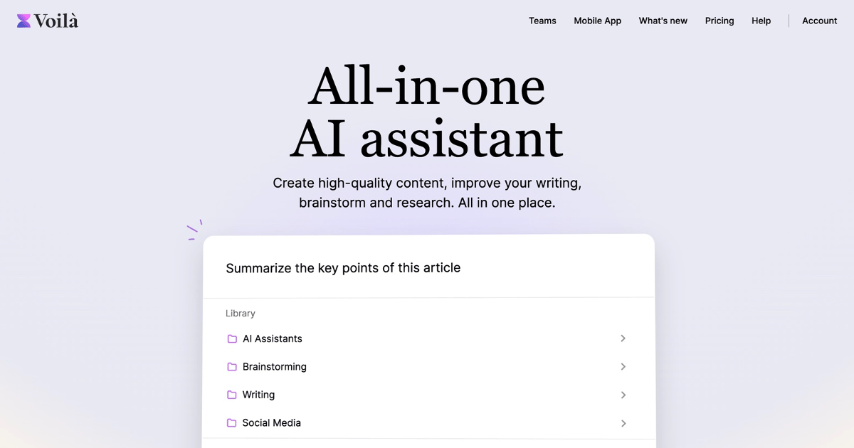 From creating high-quality content to drafting emails, brainstorming ideas, and automating repetitive tasks, Voilà is your partner to transform the way you work.