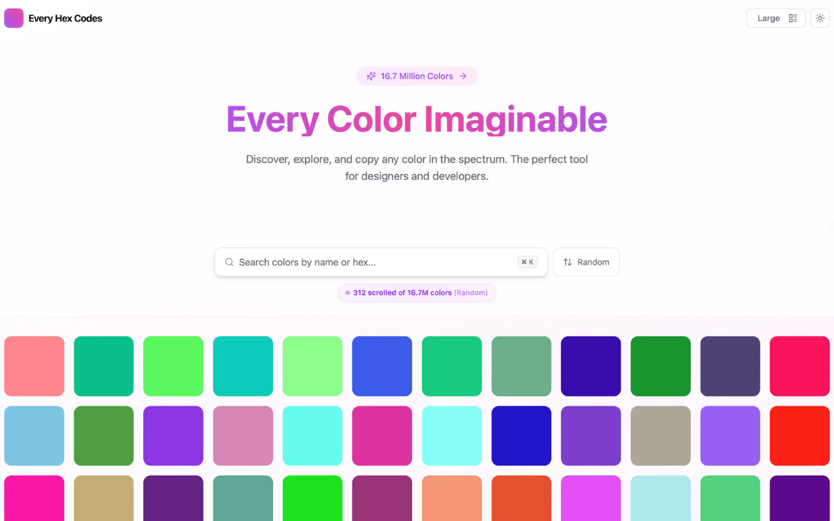 Discover, explore and copy any color in the spectrum. The perfect tool for designers and developers with over 16.7 million colors.