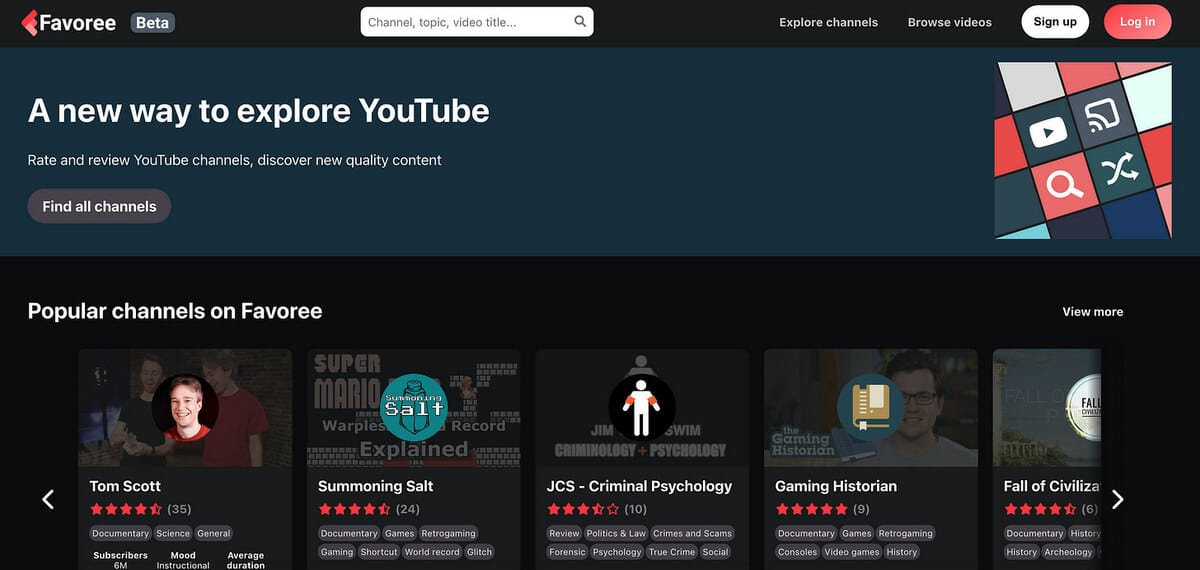 The creator of this website was disappointed that YouTube removed the dislike count on videos and decided to build the RottenTomatoes of YouTube. It helps you rate and review different channels and discover the best new content.