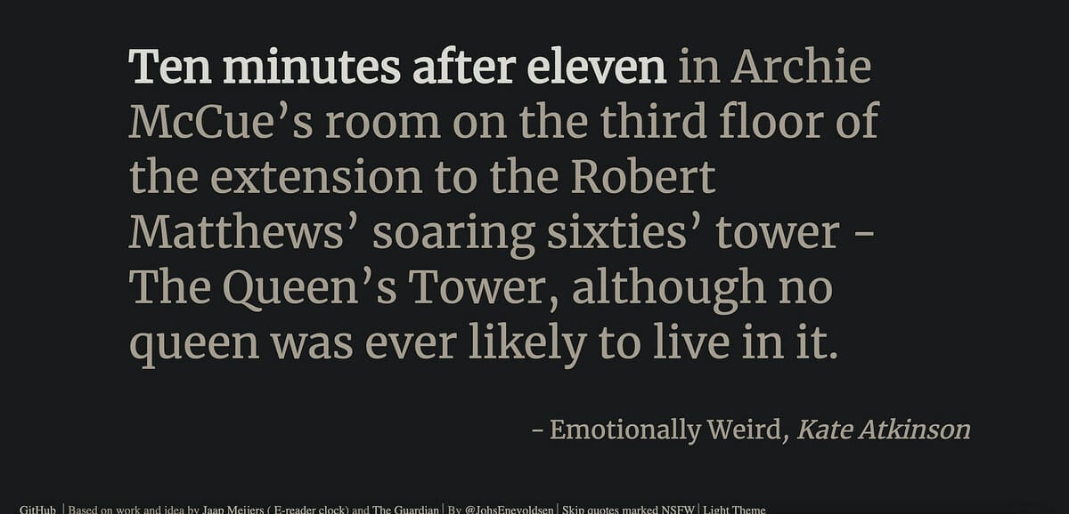 This brilliant website uses actual quotes from random pieces of literature to tell the current time. I love it!