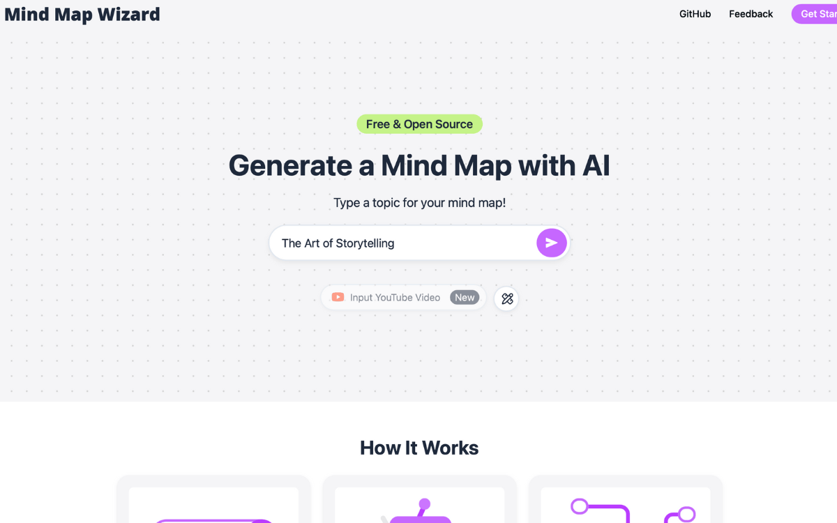 A free and open-source AI tool that instantly creates comprehensive, visual mind maps from any topic you choose.