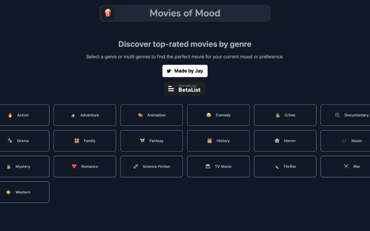 Select a genre or multi genres to find the perfect movie for your current mood or preference.