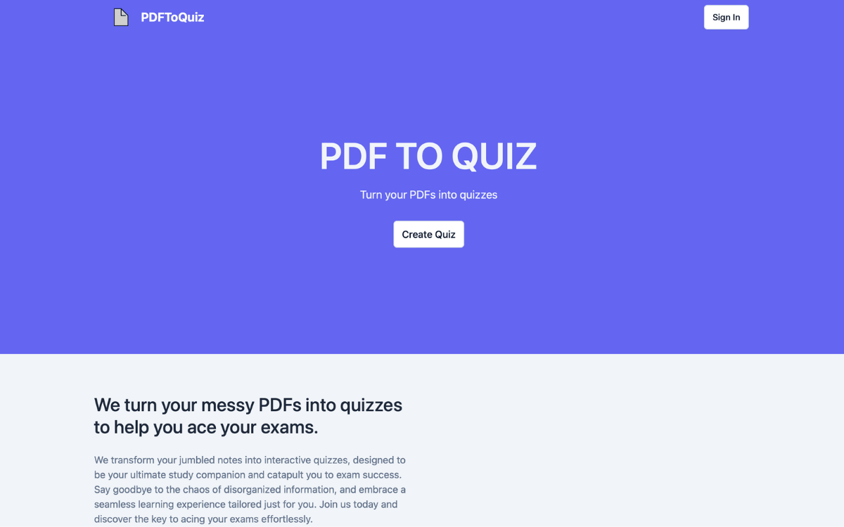 A cool website for students to turn messy PDFs into quizzes to help with exam revision.
