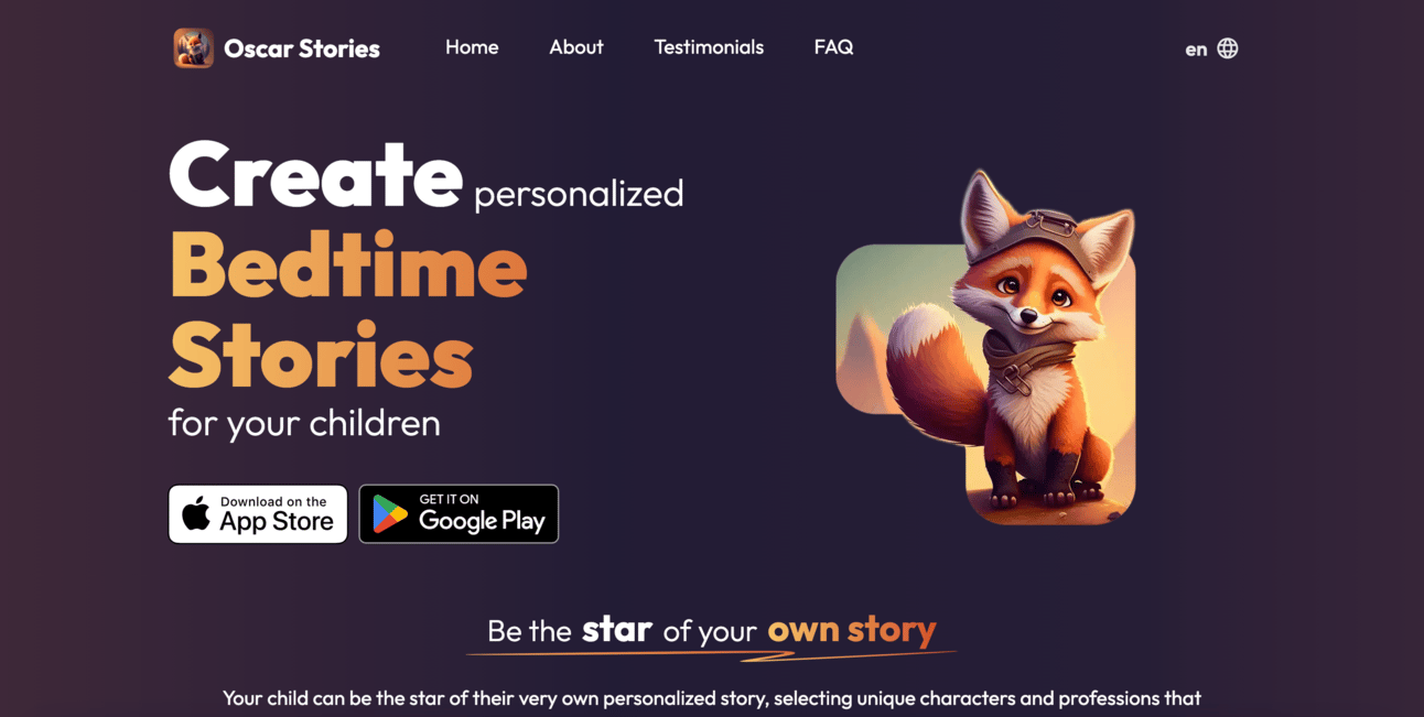 Oscar Stories is a super cool story app that lets you create personalised bedtime stories for your children using AI.