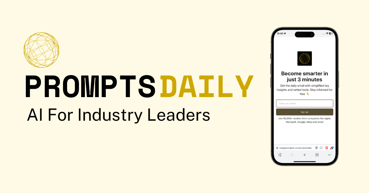 AI is the wild west right now. Lots of action. Too many updates. Massive potential. That's why we like Prompts Daily. Their free newsletter helps you get the latest news across AI and why you should care.
