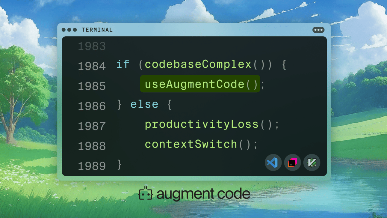 Works where engineers work: VS Code, JetBrains, and Vim. Speed, quality and security — Augment has all three.
