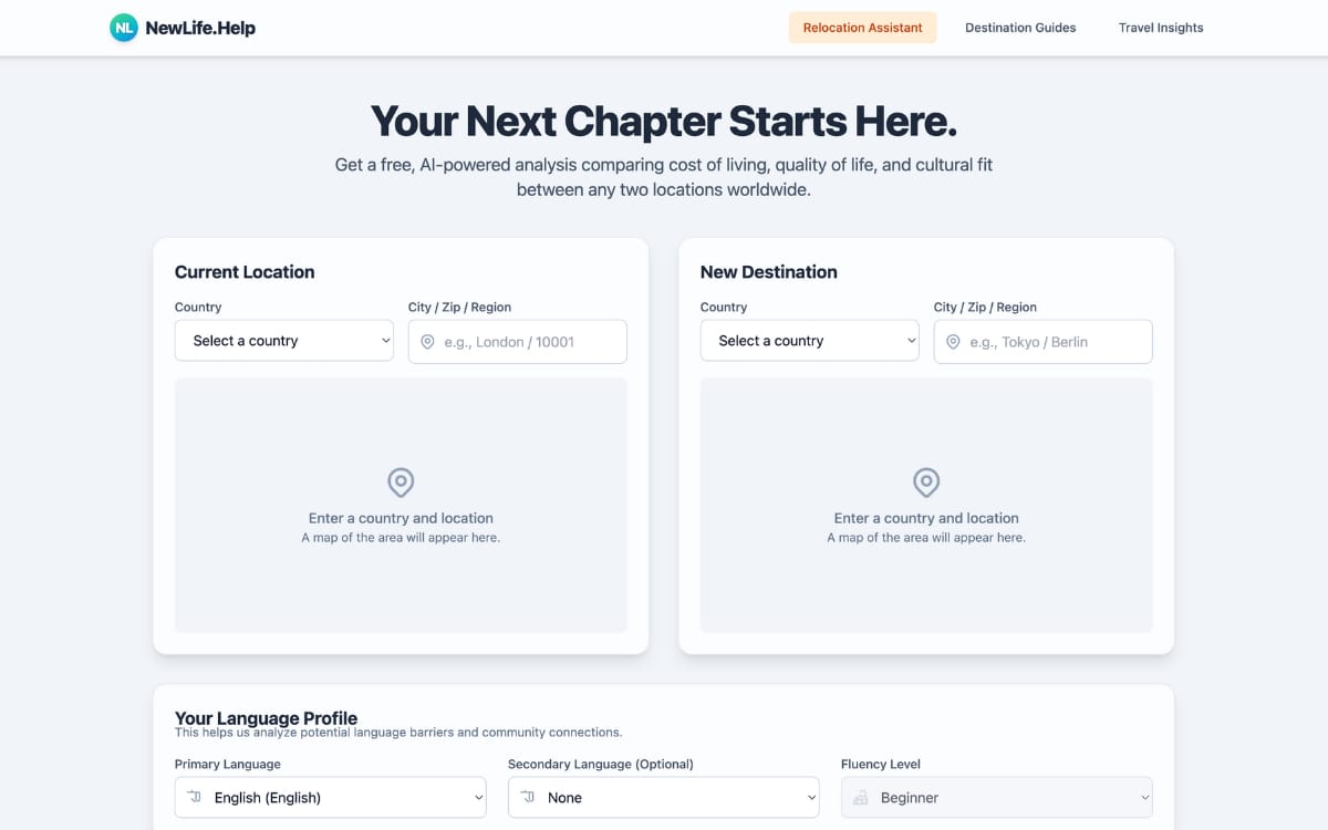 A free tool that compares the cost of living, quality of life and cultural fit between any two places in the world to help you decide where to relocate.