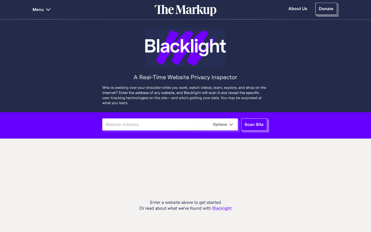 Enter the address of any website and this tool will scan it to reveal the specific user-tracking technologies on the site—and who’s getting your data.