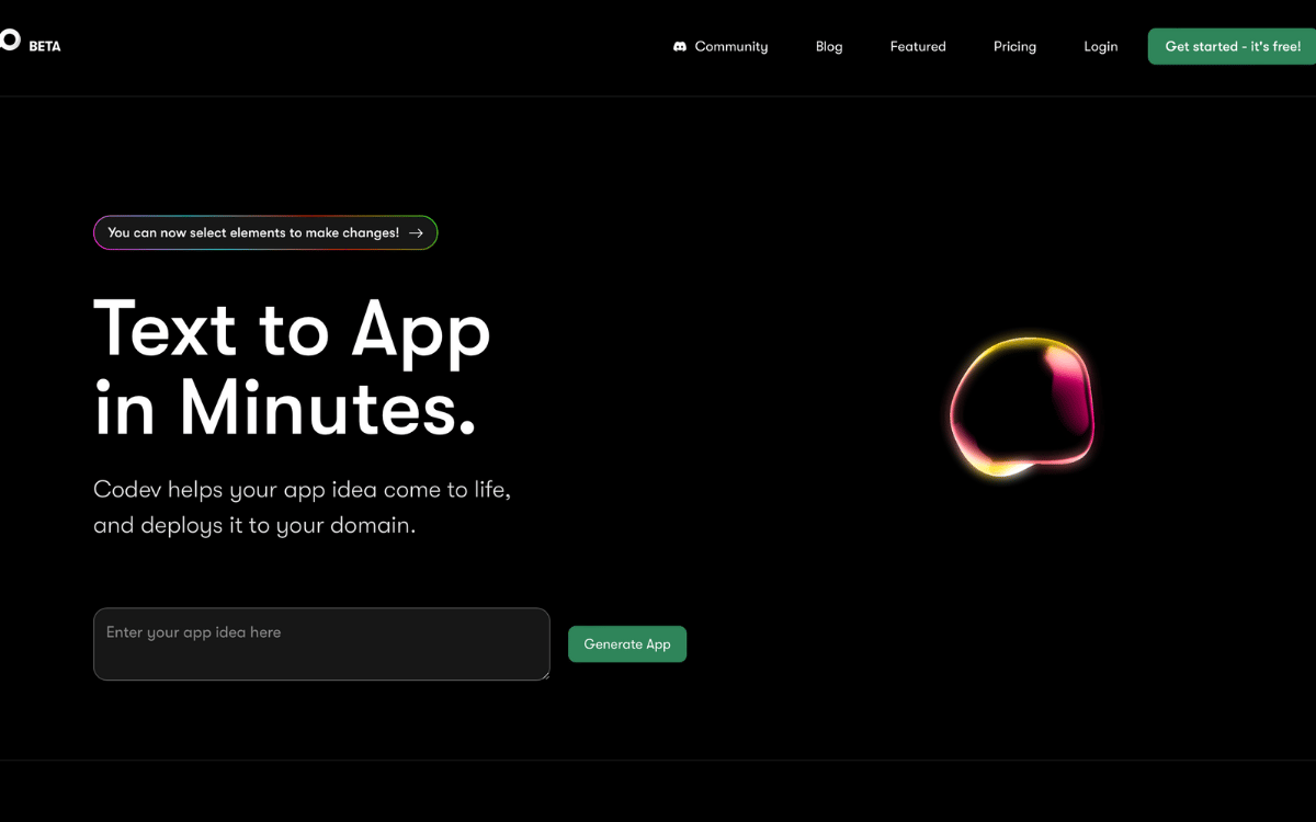 This tool helps you turn your idea into a functional app with natural text prompts and deploy it within minutes.